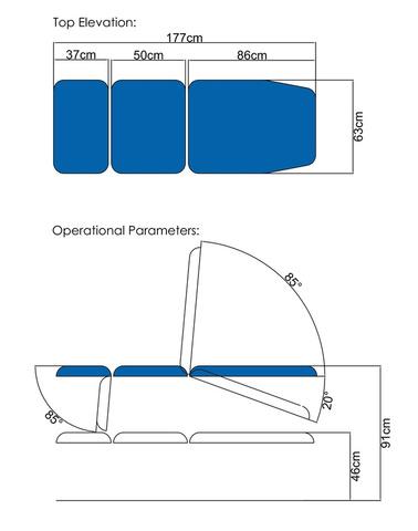 The Drop End 3 Section Plinth offers remarkab e functionality in tight clinical environments by combining compact design with advanced positioning capabilities Functioning as both a traditional three section couch and a chair, this model allows patients to be seated from the front or side