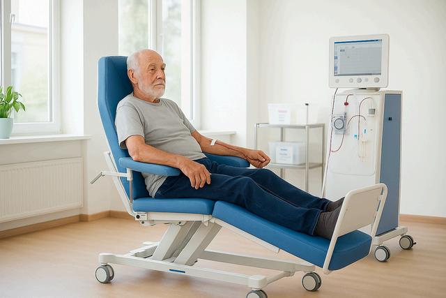 The Capre MC Medical Chair is a premium, multifunctiona treatment chair engineered with c inical precision for demanding healthcare settings such as dialysis, cytostatic therapy, post-day surgery recovery, and genera examinations
