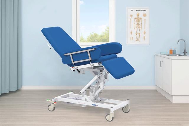 The Medi‑Plinth Treatment/Plaster Chair offers a variable-height, ergonomically designed solution ideal for general examinations. Equipped with two fully adjustable tables and the option for a split-leg design, it also doubles as a three-section examination couch