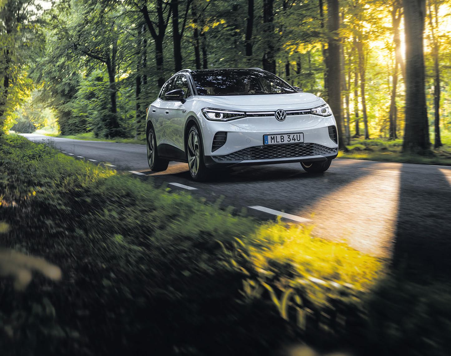 avvikelser. Den fyrhjulsdrivna versionen ID.4 GTX har dubbla elmotorer så accelerationen är blixtrande – 0 till 100 går på 6,2 sekunder – och den tar sig fram även i besvärliga väglag. Dessutom är den generöst utrustad och du kommer upp till 48 mil mellan laddningarna. Ladda gärna med förnybar el, till exempel genom elavtalet Volkswagen Förnybar El. Då ingår också tre års fri laddning av bilen där hemma. ID.4 GTX från 638 900 kr. ID.4 GTX. Mer kraft att elektrifiera livet.