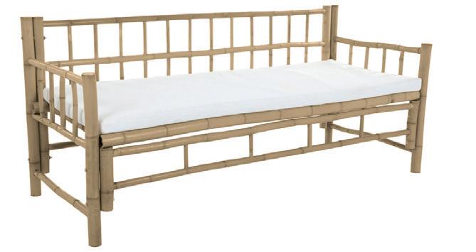 Inred med en soffa i bambu med kuddar i bomullstyg från Reforma Stockholm, 5649 kronor. Foto: Reforma Stockholm