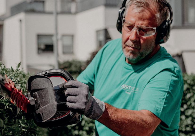 Vi klipper gräsmattor, rensar ogräs, tar bort gamla växter, beskär träd och buskar m. m.