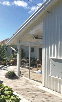 tan med stora furustaket utan går med nätta staket, man pratar med huset så det inte ser ut som att man byggde ett hus på 50.talet och sedan gjorde en altan eller en trädgård på 90-talet.