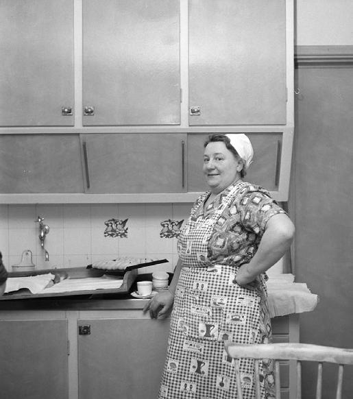 I dag lagar jag mina lunchlådor i ett kök som är från betydligt senare datum. Det är säkert effektivare än min mormors kök, men det är inte längre ett av de större rummen i lägenheten utan ett mer avlångt rum där det är svårt att få plats med allt porslin (från min mormor) och inte så många bänkar och andra lediga ytor att använda sig av.