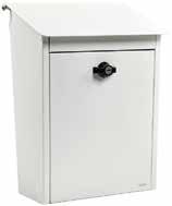 Låsbar postlåda av pulverlackat stål. Med 2 nycklar. Kan användas olåst. 40x27x13cm. Inkastets mått 25x3cm. Finns i vit och svart.