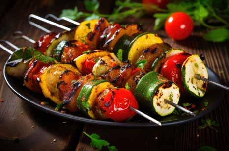 Halloumi- och grönsaksspett med harissayoghurt