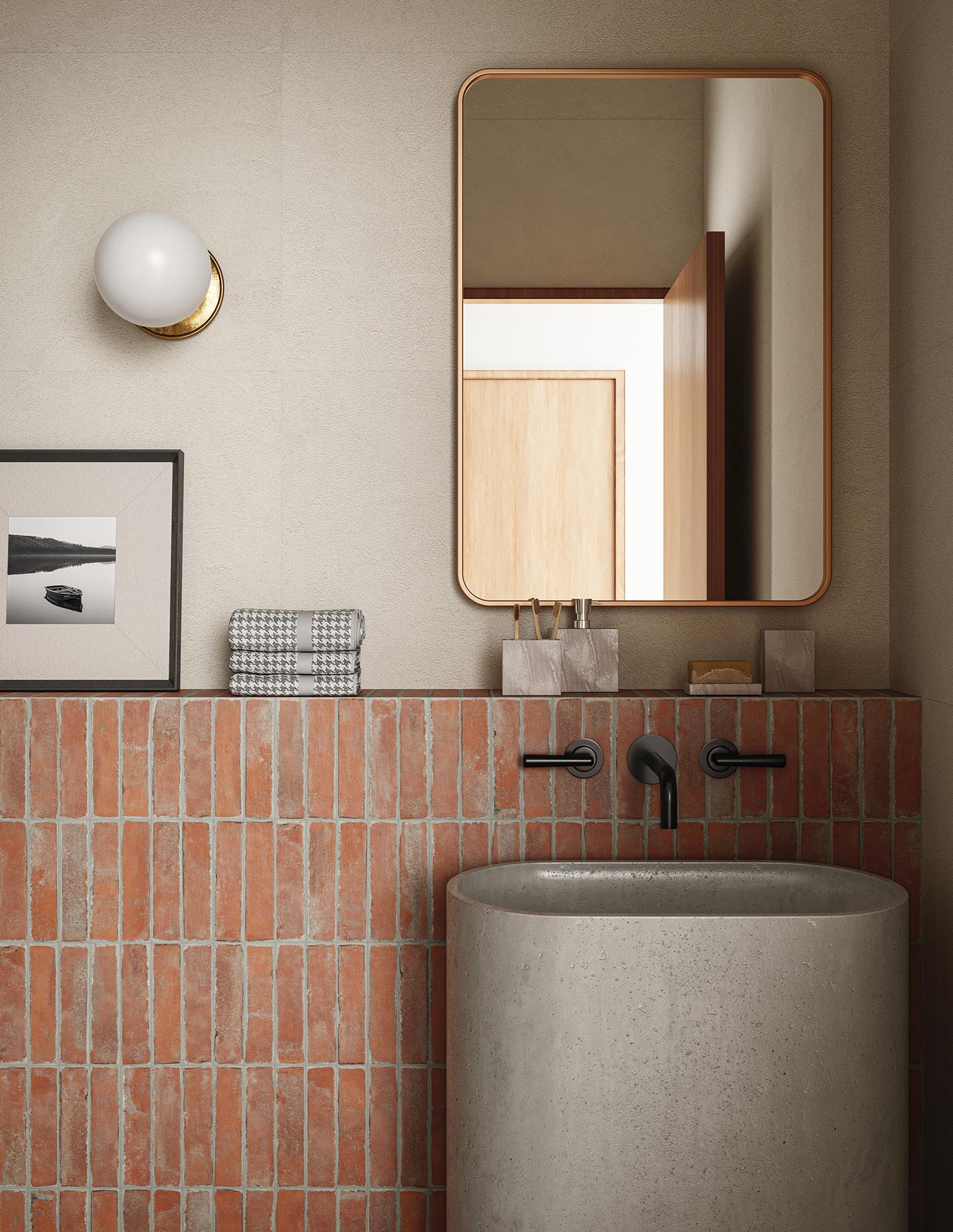 Liksom så många andra heminredningstrender handlar årets badrumsdesign om trivsel, trygghet och naturnära. Ett starkt retrostråk sticker ut bland trenderna med 70-talets varma jordtoner i kombination med glansiga 80-talspasteller. Materialen är rustika med ojämna kanter och skrovlig yta för att smälta in i naturen.