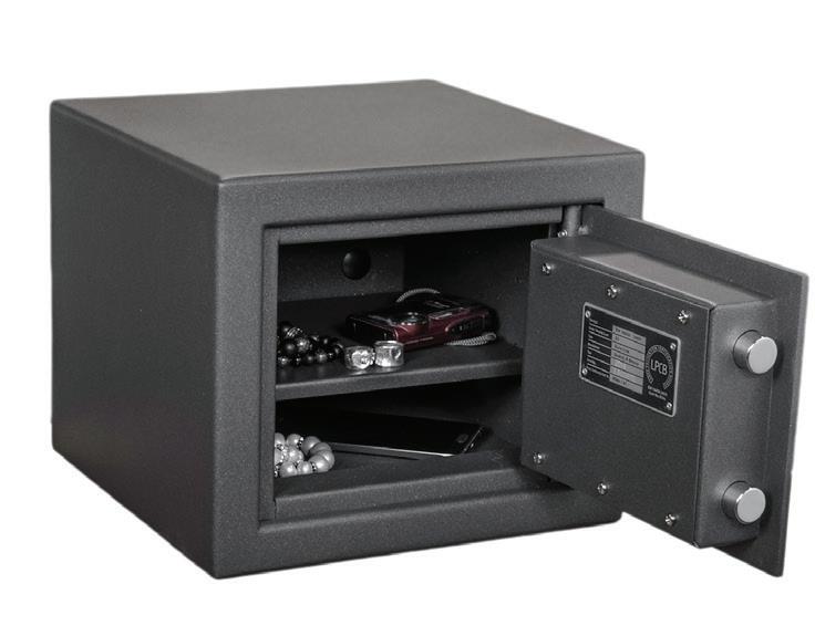Som ett bankfack fast hemma med klassat brand och stöldskydd. Lämplig som förvaring för dokument, ID-handlingar, smycken, bilnycklar och andra värdesaker. Bultas i golvet.