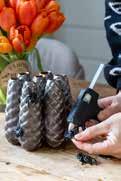 Dekorera en valfri vas genom att limma fast spindlar och fyll sedan med tulpaner. Ett läskigt men vackert blickfång!
