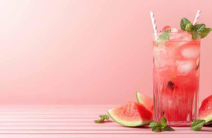 Servera sangrian i en genomskinlig karaff så att gästerna lockas av den vackra rosa färgen. Toppa med en kvist mynta.