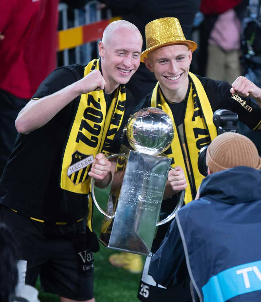BK Häcken har tagit ännu ett steg i sin nu 82-åriga historia. Hösten 2022 sprängde det anfallsglada Hisingslaget den sista vallen och vann i överlägsen stil SM-guld. Hallå var på plats både när laget höjde Lennart Johans sons Pokal på Bravida Arena och när guldfirandet med supportrar fortsatte på Kvilletorget dagen efter.