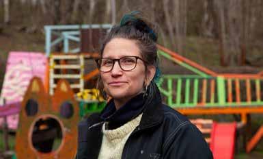 Fritidsledaren Anna Ryding vägleder barnen på Bygglekplatsen från idé till färdiga byggen.