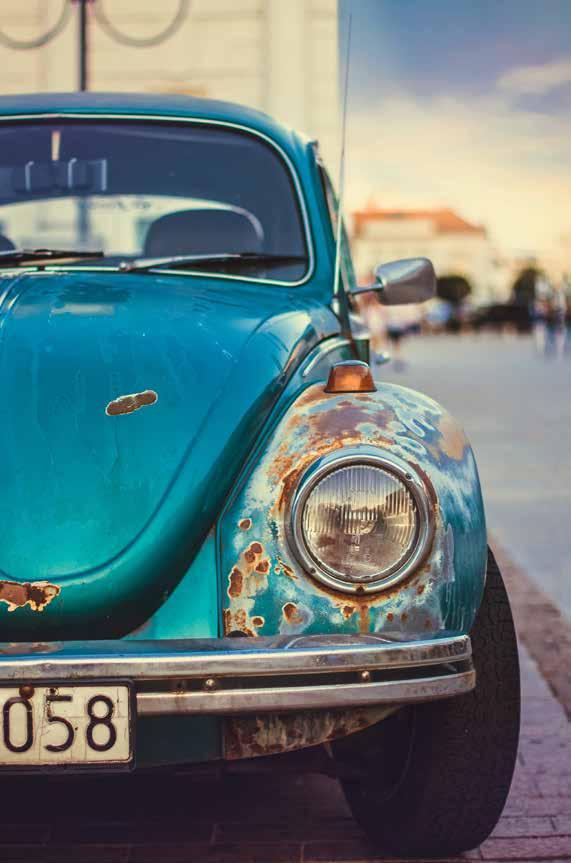 Har hjulhusen klätts med filtmaterial finns det all anledning att kika en extra gång runt skärmkanterna. Filtmaterial et binder vatten, smuts och salt. För att verkligen se hur hjul- huset mår måste innerskärmen demonteras. Runt själva hjulhuskanten och längs dörrtrösklarna blir det lätt stenskott som måste åtgärdas för att rosten inte ska få fäste. Att noggrant spola ur hjulhusen när bilen tvättas, samt efter den salta säsongen även använda en hjulhusborste och tvättmedel för att få rent filt- materialet, är vad bilägaren kan göra för att minska risken för rostangrepp.