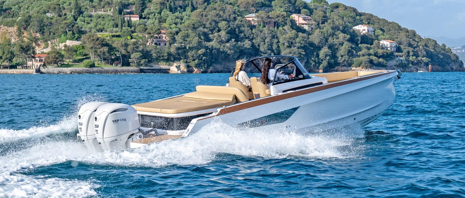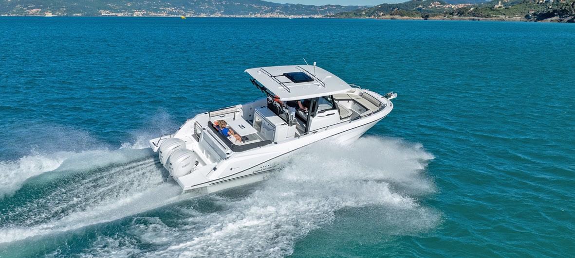 Jeanneau CC 10.5 com 2 Yamaha F350BET, Capelli T 42 com 2 Yamaha F350BET, Capelli T 900 com um Yamaha F350BET e o Yamarin 80 DC com um Yamaha F350BET