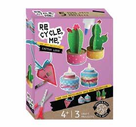 Recycle me! Met deze leuke kit kun je 3 verschillende home deco projecten maken: een decoratieve hanger, een cactus en twee waxinelicht-houders in de vorm van taartjes. Het enige dat je uit je eigen kast nodig hebt is lijm, een schaar, blikjes en een eierdoos. Verkrijgbaar in meerdere varianten bij Bruna Flora.