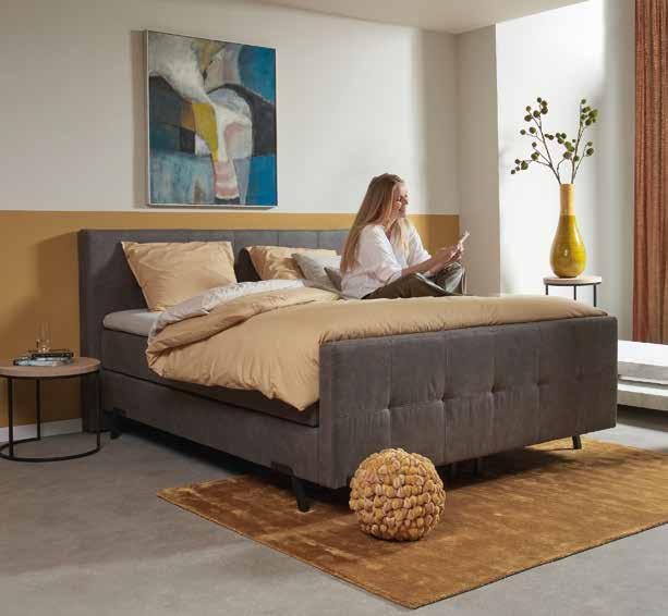 Design boxspring met stalen frame en 7-zone pocketvering met antislip inclusief gratis upgrade naar een luxe HR koudschuim topper van 8 cm dik met Tencel tijk. De naden op de hoeken en matrassen zijn afgewerkt met mooi zadelstiksel. Standaard voorzien van voetbord. Leverbaar in 3 kleuren