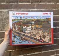 En weer is er zo’n nieuwe, fijne puzzel met een Deventer thema. Met veel humor worden de vele iconische oude en nieuwe panden van Deventer belicht. 1000 stukjes puzzelplezier. Opvallend zijn de tientallen figuurtjes die op en rond de gebouwen zwerven, met boten in de IJssel liggen en zonnebadend op de Deventer daken vertoeven. Een eerbetoon aan ons prachtige Deventer én zijn inwoners. De puzzel kost € 19,95 en is verkrijgbaar bij de VVV Winkel, Brink 89 of via deventerwebwinkel.nl.