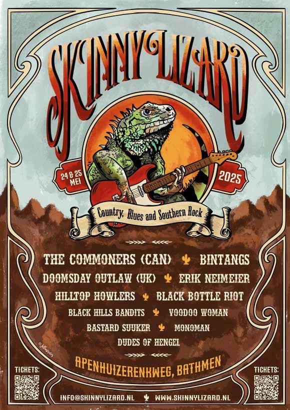 Het bruisende muziekfestival Skinny Lizard vindt dit jaar plaats op zaterdag 24 en zondag 25 mei in Bathmen. Bekend om zijn mix van southern rock, blues en country, biedt het festival wederom een gevarieerd programma voor muziekliefhebbers.