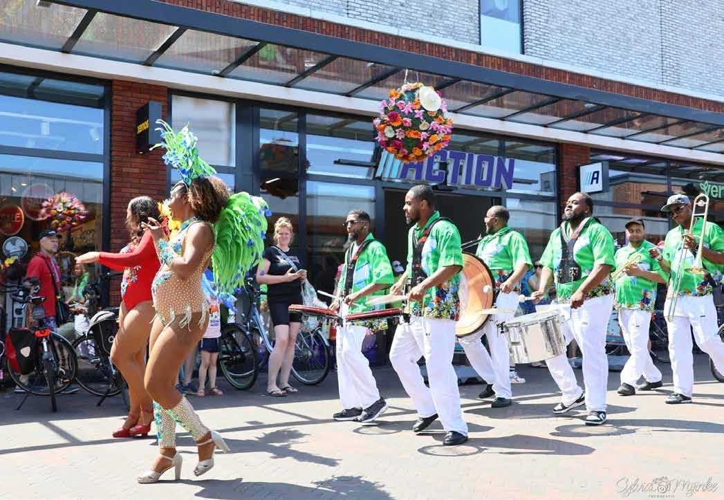 Naast de muziek die van de bingo en de minitalentenjacht afkomt, zijn er meerdere live optredens van de Carribean Brass band. Deze 7-koppige band hoor je al van verre aankomen met hun opzwepende Caraïbische drums. Gaaf om te zien én om te horen!