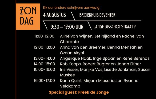 • 10.00 - 17.00 uur: Voorlezen uit eigen werk door Deventenaren en andere bezoekers. Frénk van der Linden stelt