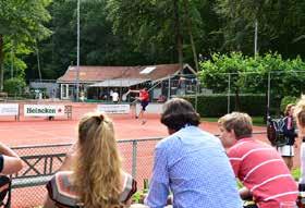 Wanneer je aan komt fietsen bij ons park hoor je vogels en het over-en-weer spelen van de ballen. Een prachtige plek om te sporten én om na het sporten gezellig samen te zijn. Buiten onder de luifel, in de schaduw van de bomen of voor de houtkachel in ons clubhuis. We horen dan ook vaak: ‘wow, wat ligt dit park er toch waanzinnig mooi bij’. Daar ze we trots op. Door de twee verhoogde terrassen kunnen toeschouwers het spel bovendien goed zien.