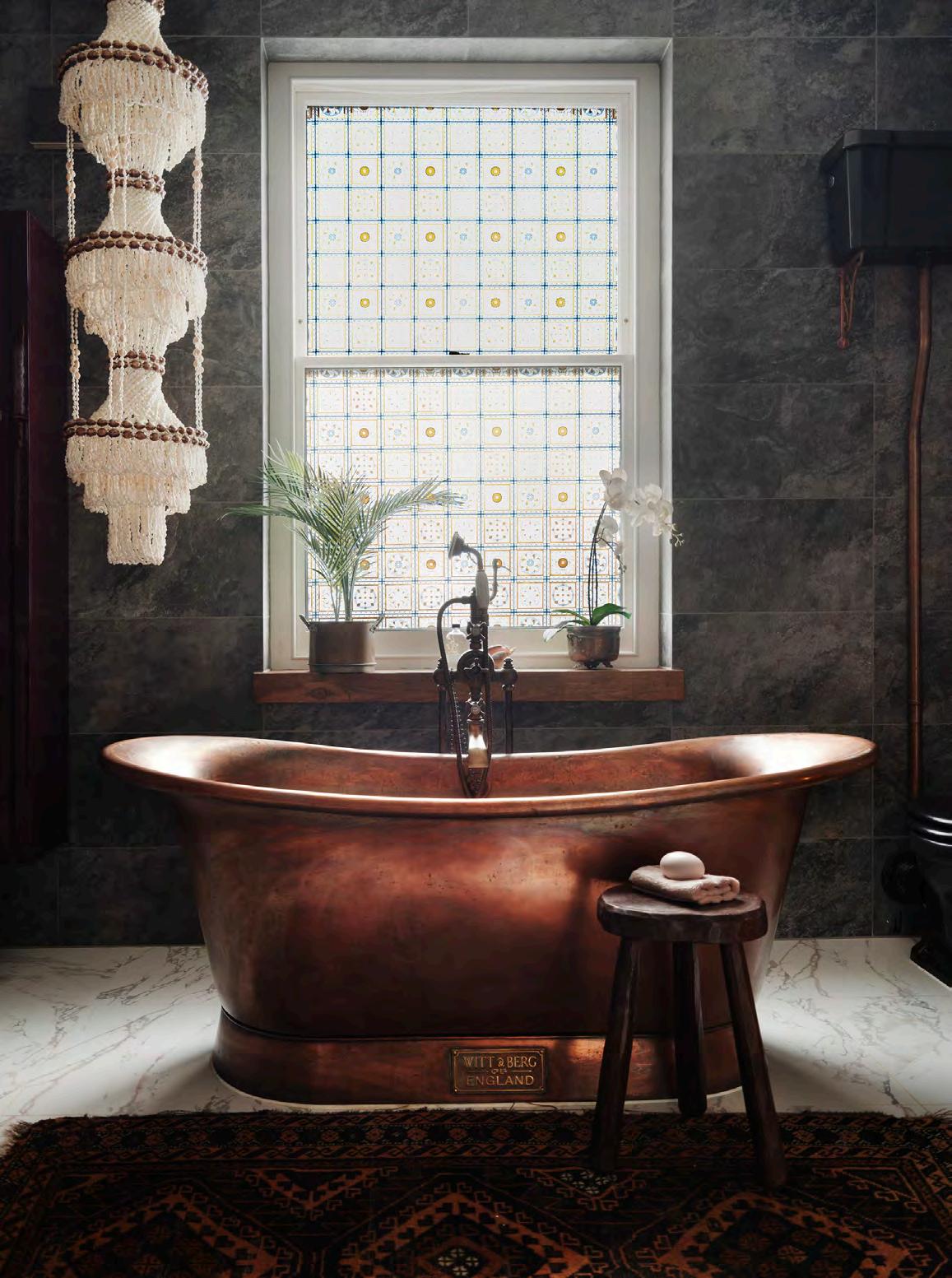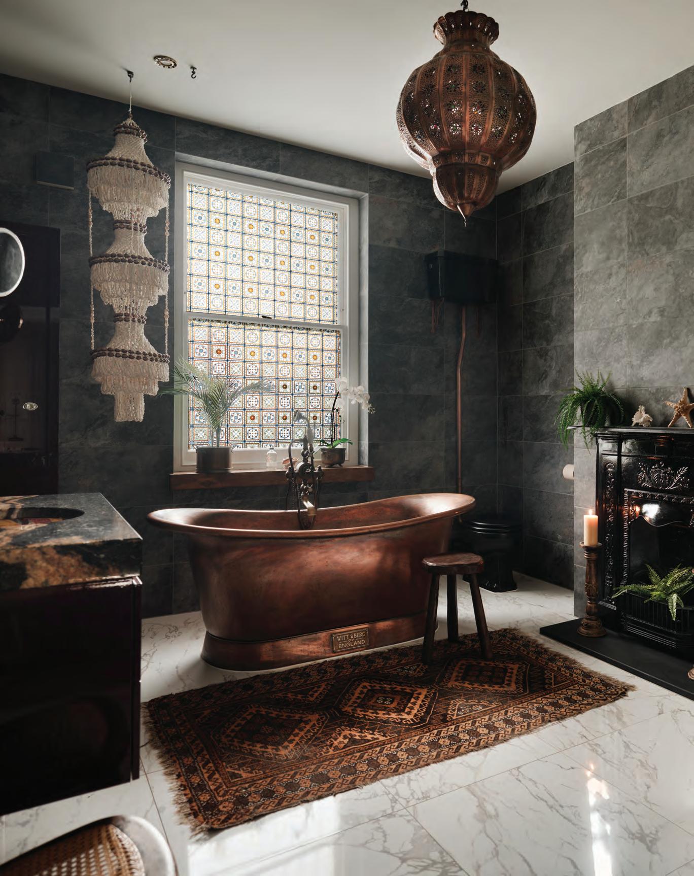 It’s dramatic, atmospheric and gorgeous, the black tiled walls and fireplace, and the paler marble flooring, setting off the free-standing copper bath, and the large stained glass window behind it, to perfection. If the Bristol Life Awards handed out a gong for ‘most covetable bathroom featured in our Property Showcase pages’ this one would be a shoo-in.