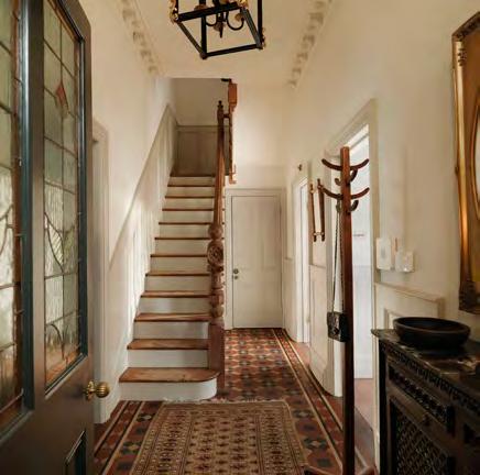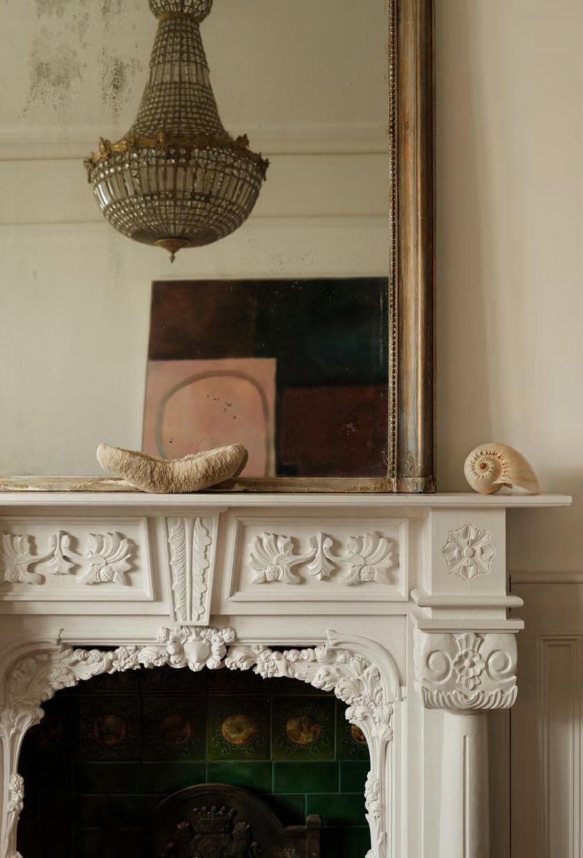 Let’s take the tour. From the inner hallway you turn right into the living room: a charmer, with its deep bay window, ornate fireplace and classic panelling. Turn left and you’ll find yourself in the kitchen, where a wall has
