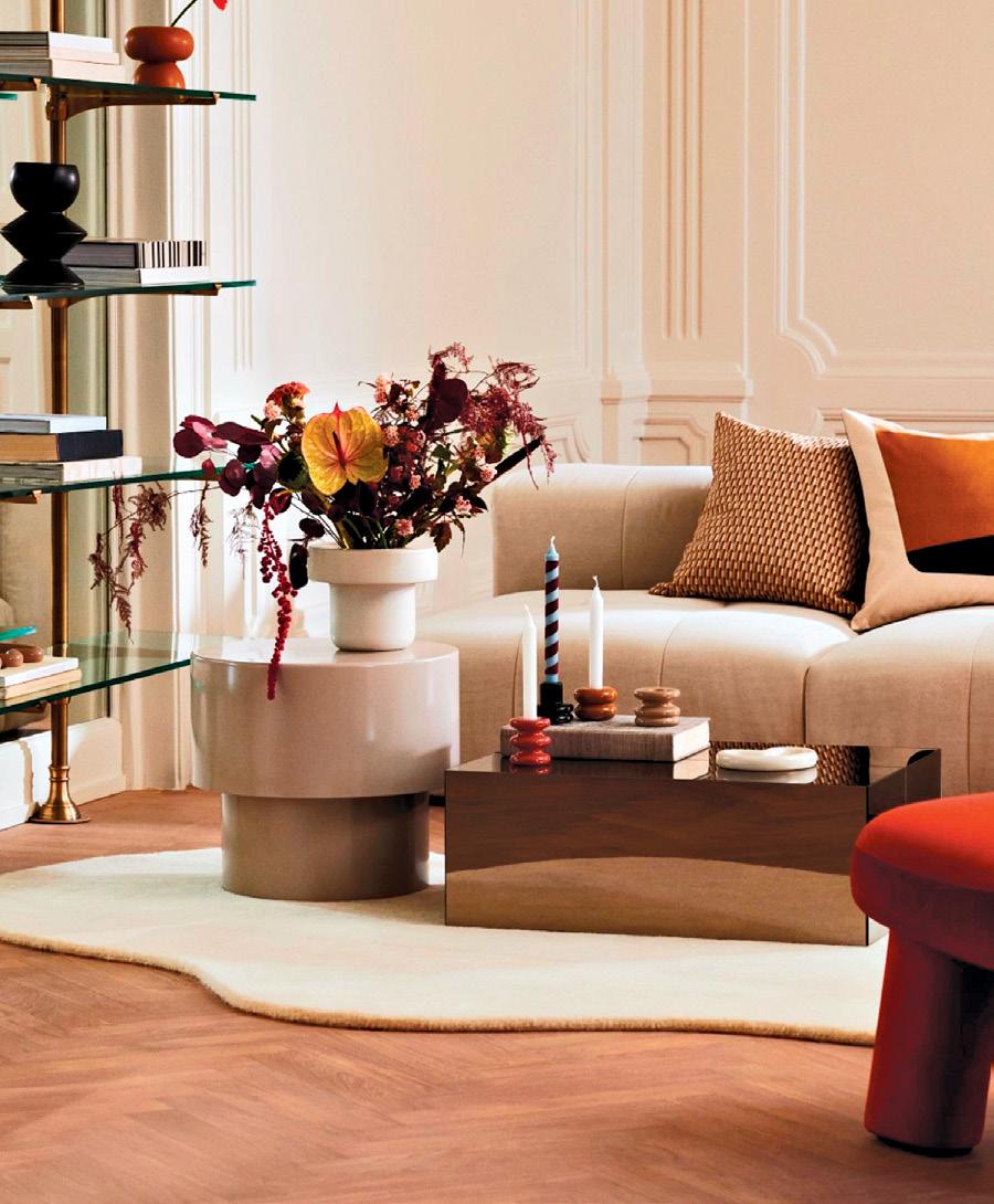 “Create a cosy living space with calm and subdued earth tones and inject hints of natural, organic textures such as wood and stone. Layered rugs are a simple and effective way to amp up the cosiness factor in your living room.”
