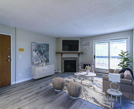 Dishwasher • Fireplace • Smart Card laundry • Surface parking • Air conditioning • No pets • Water Included • Located by BLUE Rapid Transit stop • Ample storage • 1 & 2 Bedroom Suites