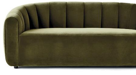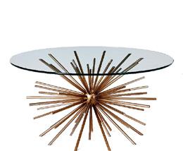 1. Starburst COFFEE TABLE. $749. westelm.ca | 2. Fayette BAR CABINET. $2,599. crateandbarrel.ca | 3. Glass and gold CONSOLE table. $349. bouclair.com | 4. Fitz channelled LOVE SEAT in green velvet. $2,499. cb2.ca