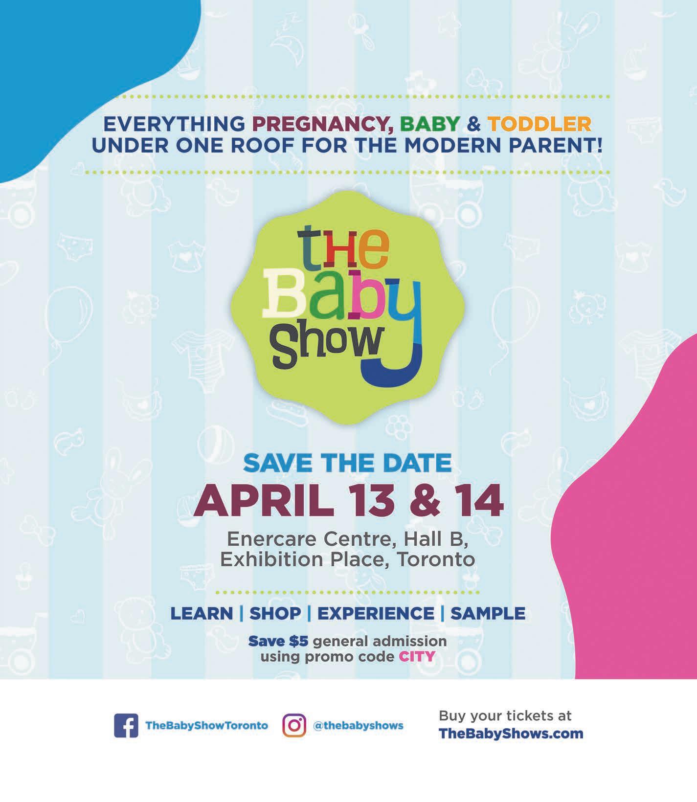 COPYRIGHT NOTICE All copyright and other intellectual property rights in the contents hereof are the property of CityParent.ca, and not that of the individual client. The customer has purchased the right of reproduction in CityParent.ca and does not have the right to reproduce the ad or photo in any other place or publication without the previous written consent of CityParent.ca. Contents of this publication, in hard copy format as well as online, are covered by copyright law, and offenders will be prosecuted. The publisher assumes no financial liability for typographical errors or omissions. All claims of error shall be made by Wednesday 5 p.m. prior to the next week’s publication and if not made, shall not be considered. No claims will be allowed for errors not affecting the advertisement’s value.