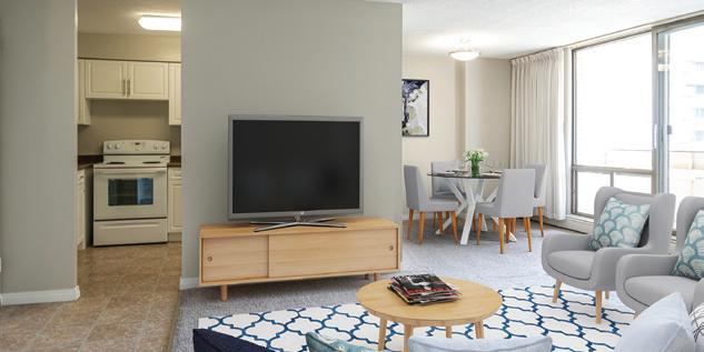 These amenity-rich apartment complexes feature spacious, recently renovated suites with loads of desirable features. Grab a workout in the indoor heated pool and gym, enjoy city views from your large balcony, and use the well-lit underground passageways to access the Courts of St. James Shopping Centre.