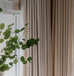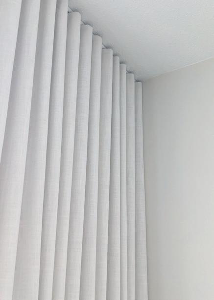 Linen-look ripplefold drapery with blackout lining