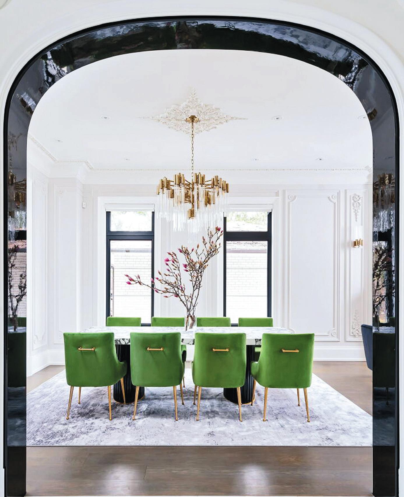 With a striking crisp white overall palette punctuated with dramatic black lacquers and metal details with a layer of delicately detailed plasterwork by the Bond workshops, the interior is textured and decadent. Of special note are the striking lacquered archways. These archways delineate the space and provide a sense of ceremony.