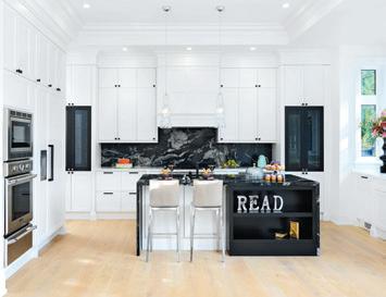 The principal room on the second floor offers many great features including a coffered ceiling, a large ensuite bath with a free-standing tub, glass shower and a very special ‘fashion forward’ dressing room. The dressing room was inspired by a retail boutique experience and showcases clothing, bags, shoes and jewellery. It is finished with high gloss lacquer and mirror and equipped with a marble island.