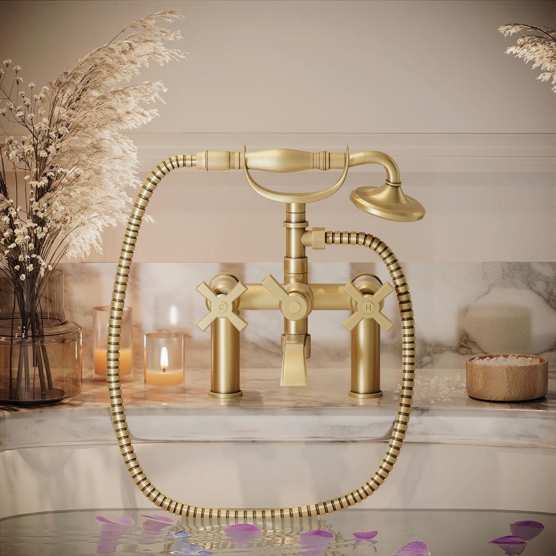 BLENDS THE ETERNAL CHARACTER OF SOLID BRASS WITH REFINED SCULPTED DETAILS THAT ELEVATE THIS NEW LINE OF FAUCETS INTO TIMELESS MASTERPIECES, AVAILABLE IN THREE EXQUISITE FINISHES.