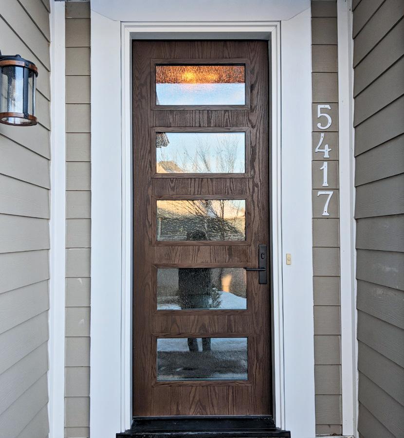 When you are selecting a colour, don’t worry about trends – focus on what will complement your home’s existing features, and what you like. Colours can look right on traditional and contemporary homes alike – a yellow door could suit a craftsman style home as much as it can suit a minimalist home. You can select a bright colour for the exterior, and a more neutral colour for the interior, called “split finish”. Just remember that the door opens into the home,