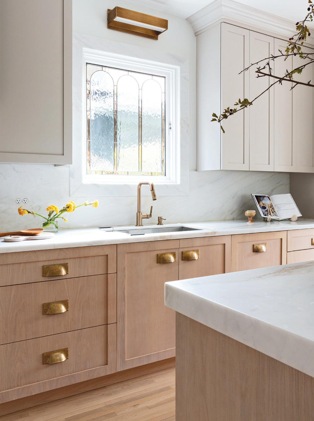 To balance the clients’ functional needs and aesthetic goals, we used a combination of open and closed cabinets and shelves, which supply valuable storage space while adding visual interest and helping tell the homeowner’s story. We finished the cabinets in a natural colour palette that echoes a more traditional aesthetic.
