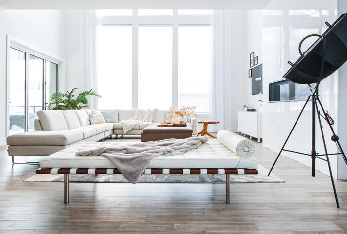 giving some major design inspiration! Rochelle Cote of RCID has found that compelling and dynamic living room design starts with the floor, and notes that the right area carpet helps to bring the room together. Check out all the details on page 52. Trisha Isabey explains the importance of size and scale in her feature on page 56, and Marie Hebson of Interiors by Design gives us the seven steps to the perfect living room on page 58.