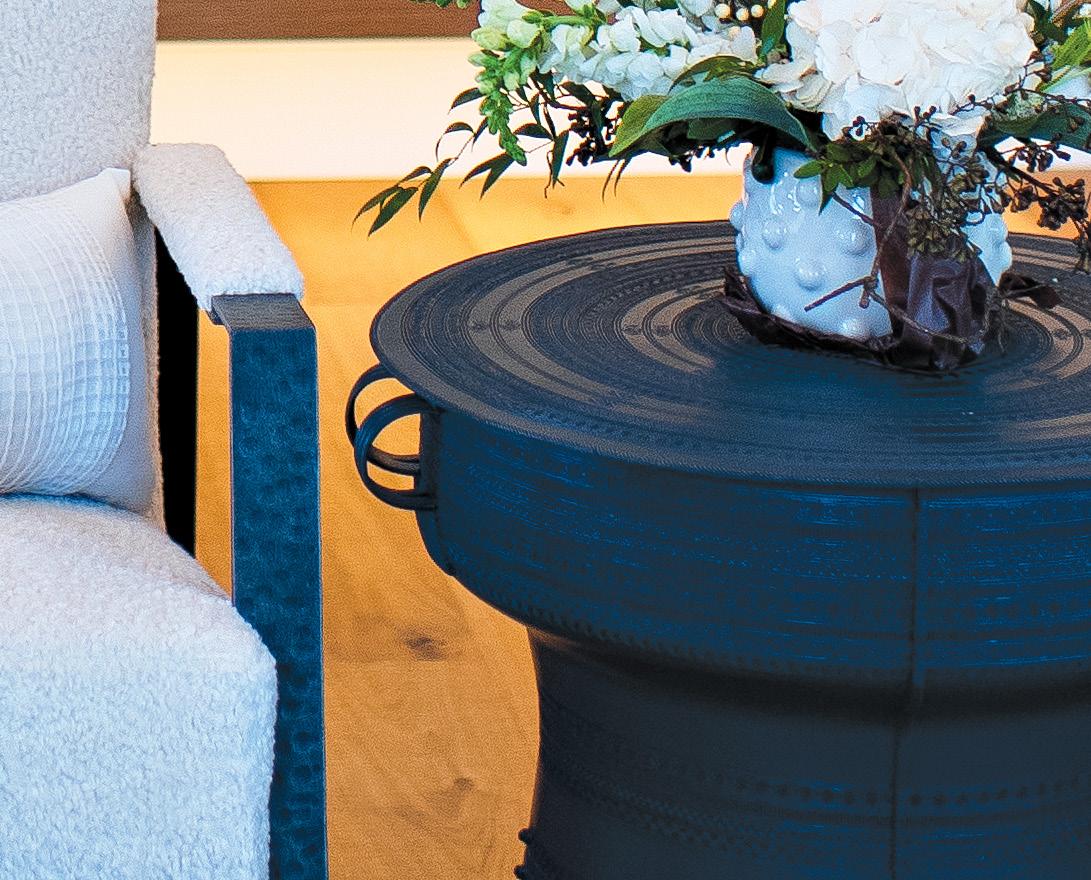 • Pull it together with a coffee table or set of tables (all tables should be 20-inches from the sofa or chair…that will determine your size required of coffee table in the space)