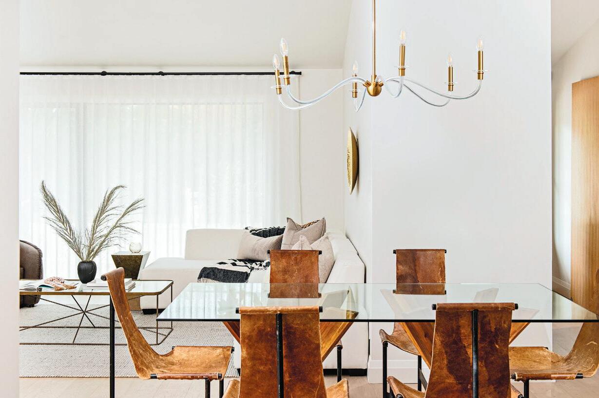 Since you’re likely limited in square footage, the best way to achieve negative space is by editing down your furnishings to create that breathing room. Limit your furniture to essential items and multi-functional pieces. Choose “leggy” furniture that you can see under, such as a sofa with feet, or chairs with legs. Also consider glass furniture that don’t block light or obstruct views.