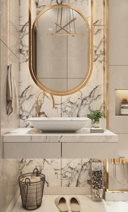 Bathrooms heavily rely on finishes due to the constraints around space