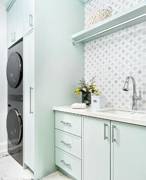 Where the faucet is placed can significantly impact which sink style you choose and the cabinetry layout. For example, to prevent splashing and potential water damage, consider factors such as the faucet height, depth and position. For wall-mounted faucets, the risk of splashing increases when the water hits the drain directly. Changing the faucet’s position after installation can be costly, so plan thoroughly beforehand. To avoid splashing issues, analyze the sink’s shape and depth in relation to the faucet’s water stream.