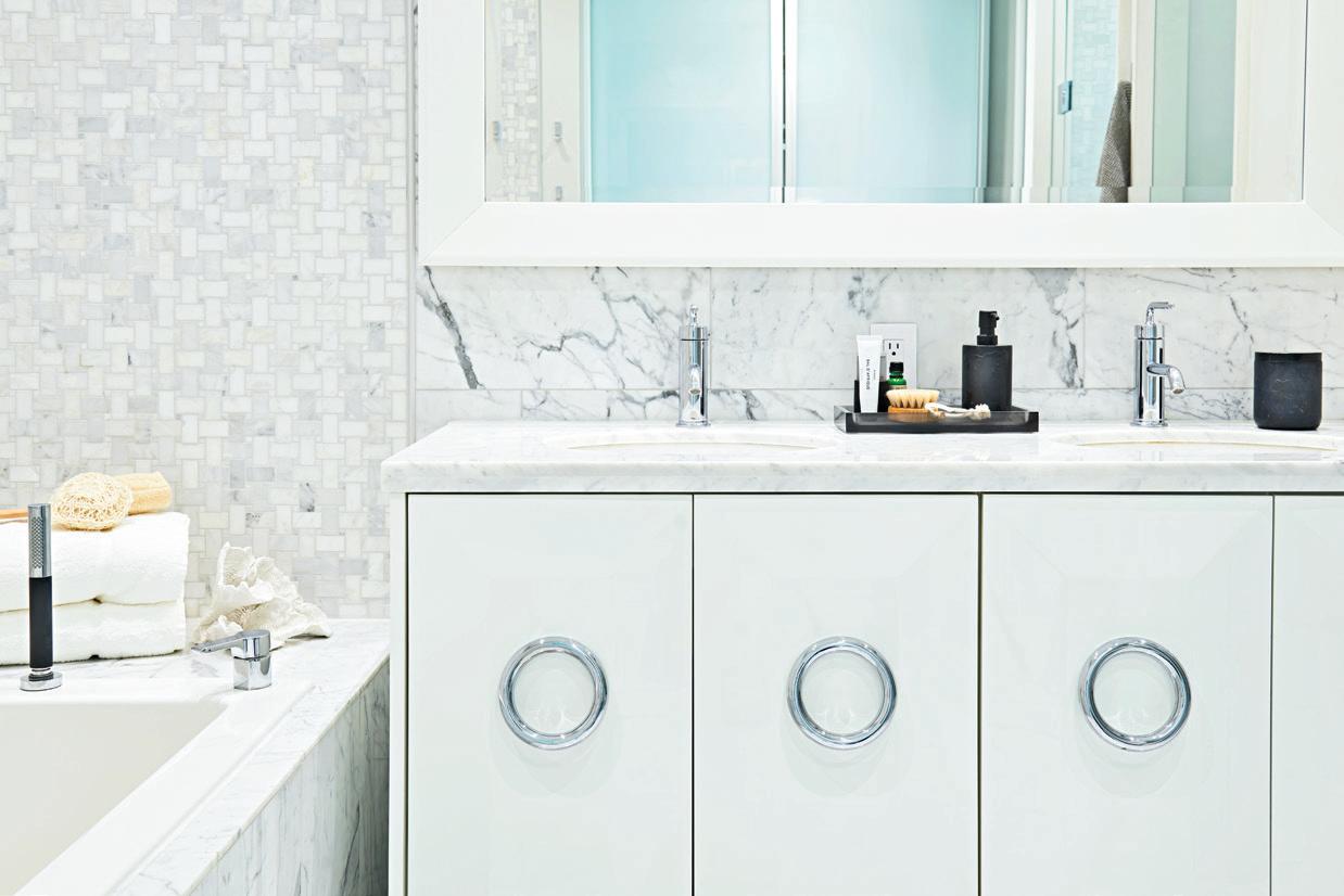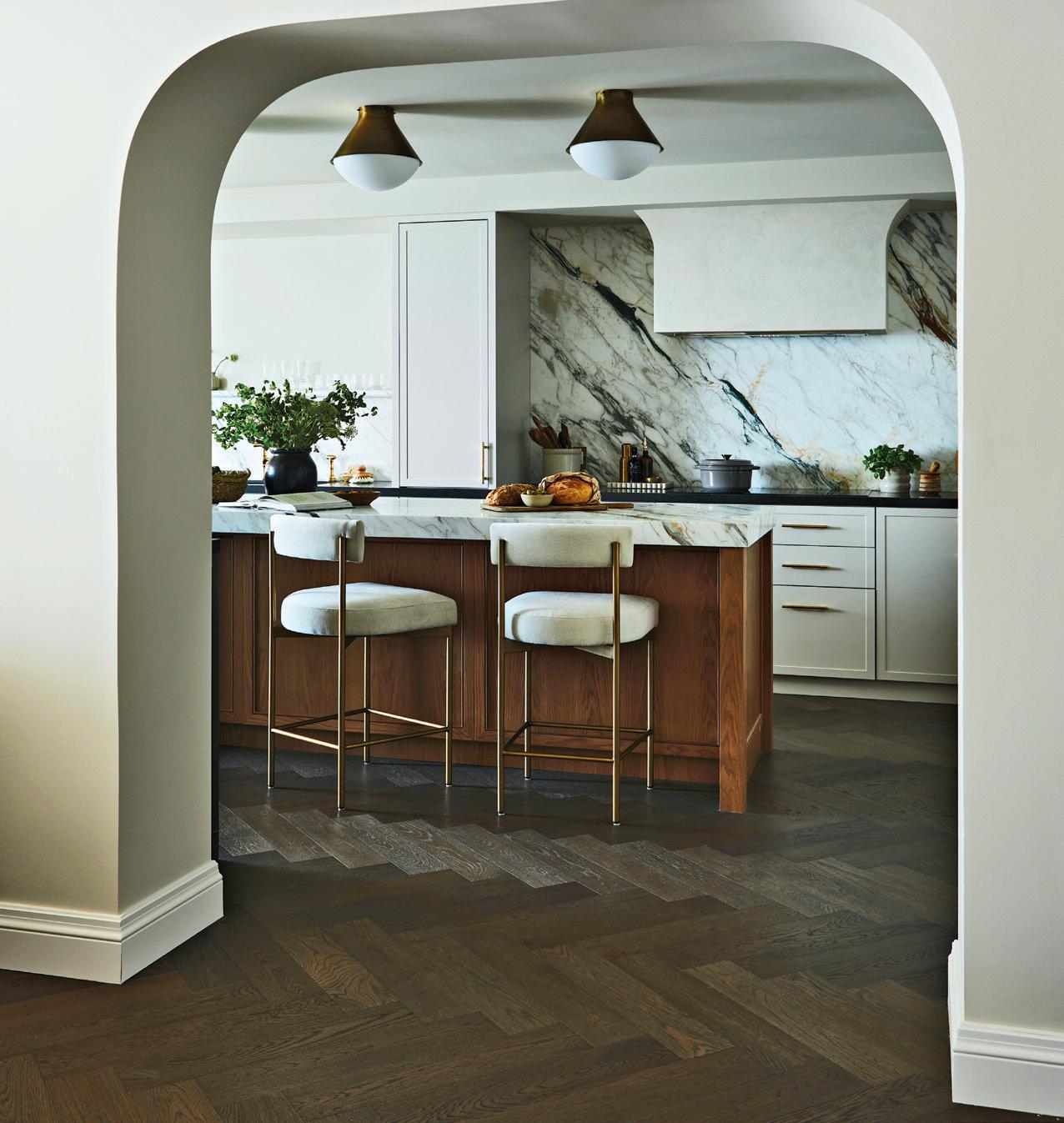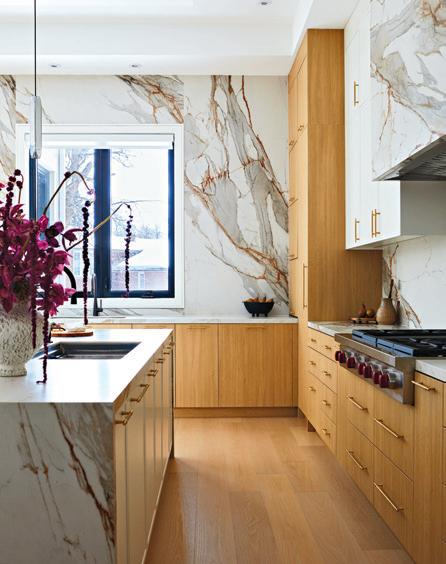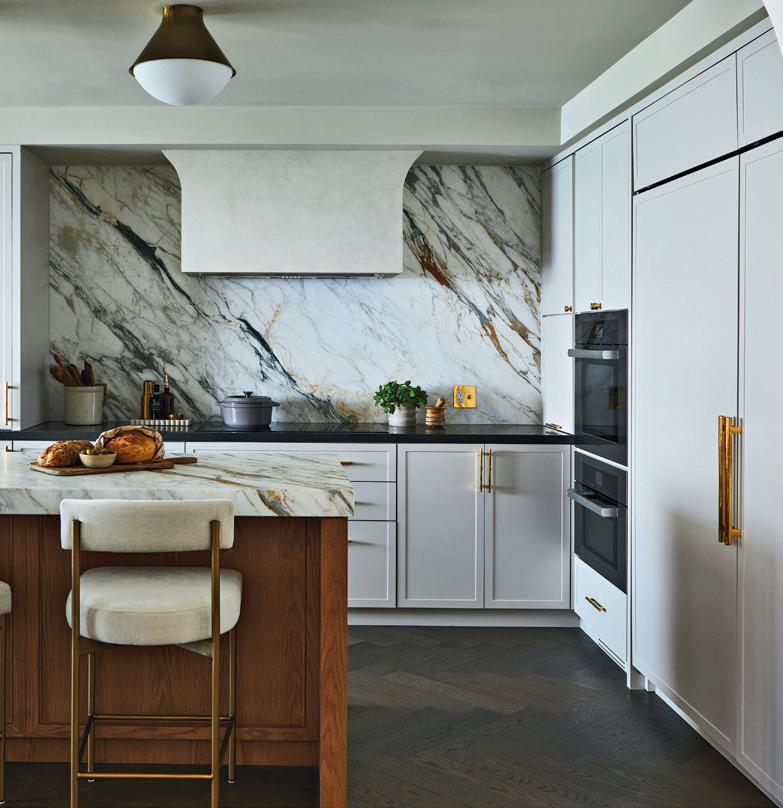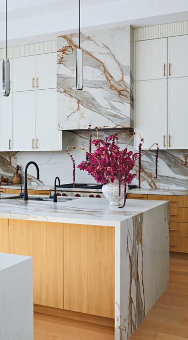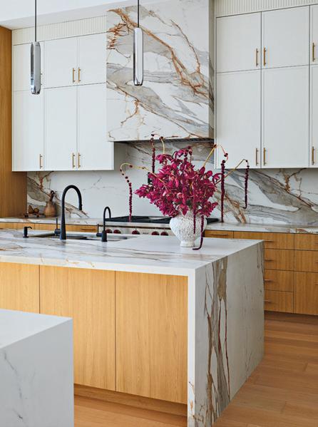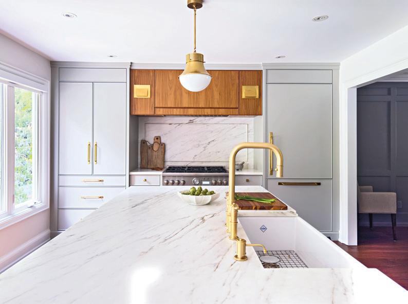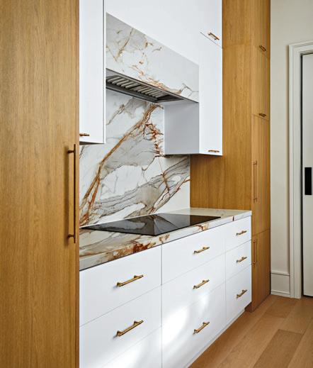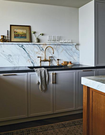 brass blended softly into the millwork, allowing the stone and form to lead. The result is a restrained, harmonious interplay of materials that enhances rather than conflicts.