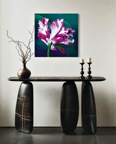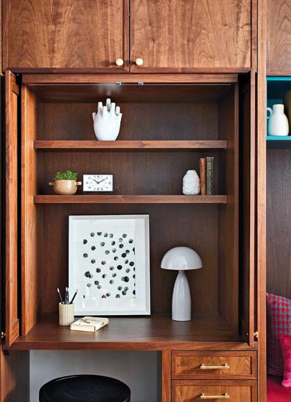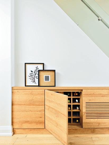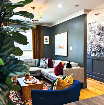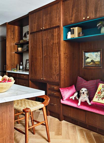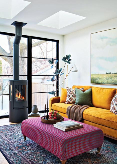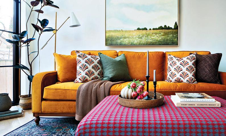 “We used high quality and tactile materials like velvet for the couch and seating nook,” says Crezel. “We chose hand-crafted designs and moved away from fast and trenddriven consumption. The couch and ottoman were custom builds, and the fabrics carefully considered.”