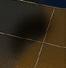 while recessed ceiling lighting ensures practical brightness without overpowering the album art. Matte black plumbing fixtures echo the darker tones found throughout the basement and visually connect to the recording equipment nearby. Large-format charcoal porcelain tiles run continuously through the entire basement for visual continuity and repeat the flooring from the main level.