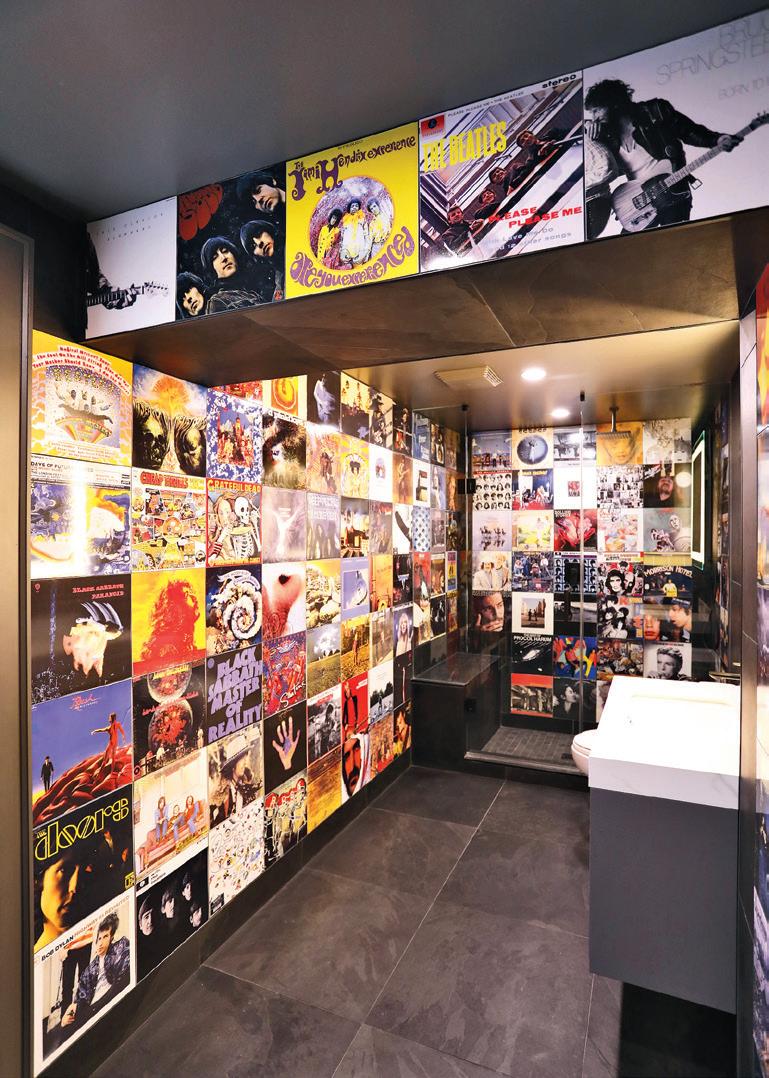 serve as a professional-grade music studio, a listening lounge, an exercise area and a comfortable guest space. And at the centre of it all, he wanted a bathroom that paid tribute to the music and artists that shaped his life.