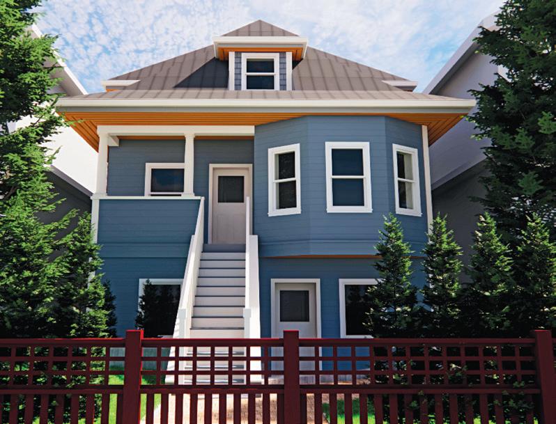 The 1908 project began with a clear brief from the homeowner. Stay in the neighbourhood. Respect the heritage streetscape. Deliver a net-zero triplex: Restore the main home, add a twobedroom garden suite and build a new three-bedroom net-zero infill laneway home. From there, the scope expanded. The team set out not only to eliminate operational energy use, but also to reduce embodied carbon.