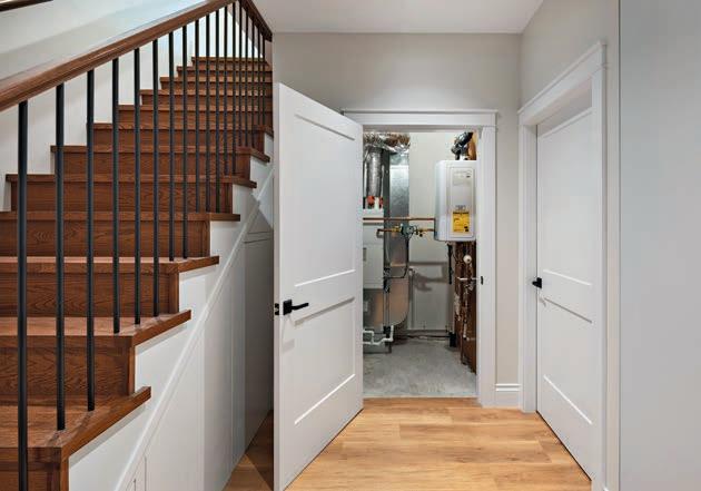 “Whether you’re comfortable with a power saw, or are cutting by hand with a mitre box, feature walls are a recommended go-to to infuse a space with design on a budget. The possibilities are endless with just a few MDF baseboard pieces from the hardware store. I recently gave a client’s drab entryway a facelift by installing MDF pieces in a board-andbatten style halfway up the wall with a narrow shelf on top. I painted it out to match the existing trim colour and stained some simple dowel peg hooks for contrast. Now the space looks purposeful, instead of forgotten.”