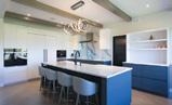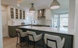 A beautifully curated kitchen with modern elements and a touch of farmhouse – a perfect and spacious room for family and friends to gather.